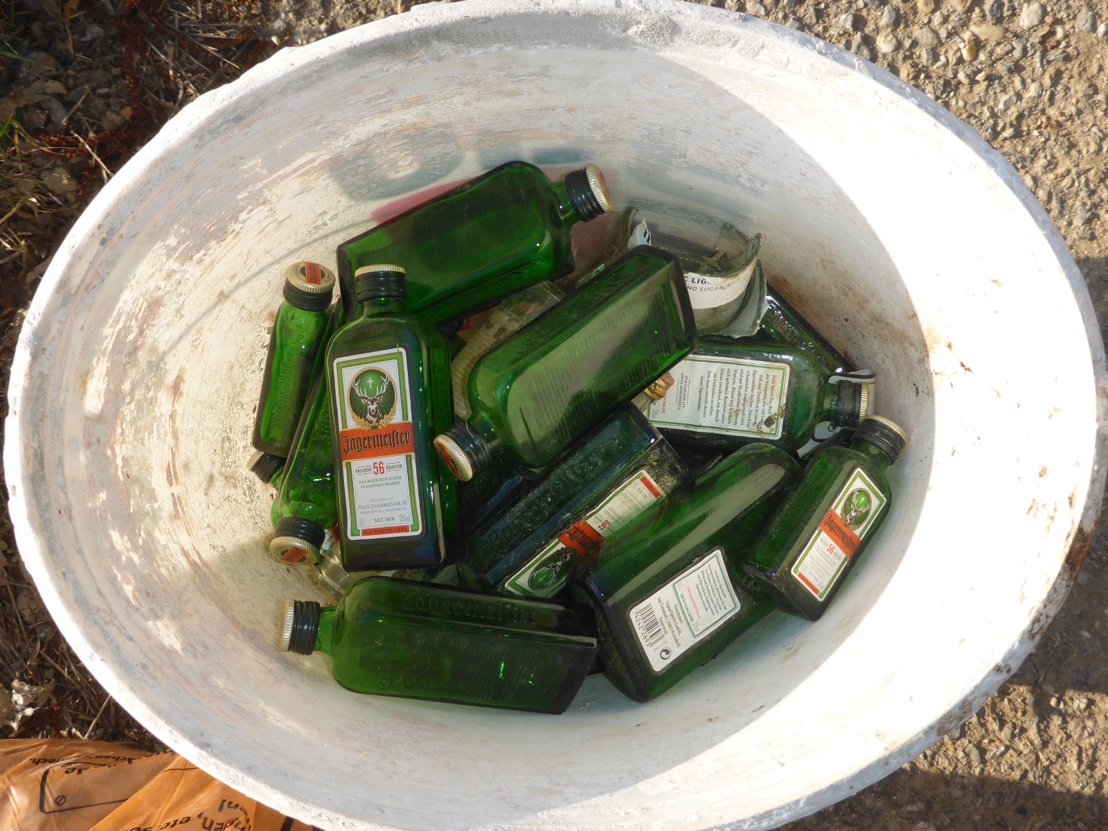 Zusammenfassend bleibt zu hoffen, dass auch die trinkfreudigen Kräuterlikör-Konsumenten ein ausgeprägteres Umweltbewusstsein entwickeln – dann wären Flurreingungs-Aktionen zukünftig angenehme Spaziergänge anstatt einer Müll-Schlepperei!