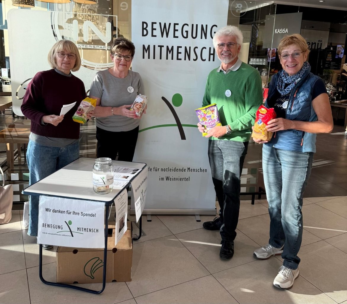 Am ersten Oktoberwochenende sammelte der Verein „Bewegung Mitmensch Weinviertel“ über Einladung der Marktleitung von „Interspar Mistelbach“ wieder Lebensmittel und Hygieneartikel für notleidende Menschen im Großraum Mistelbach. Die Einkaufenden wurden eingeladen, zusätzlich zu ihrem persönlichen Einkauf auch etwas für Bedürftige zu erwerben und anschließend zu spenden. Der Schwerpunkt lag dabei auf lang haltbaren Lebensmitteln und Hygieneprodukten.