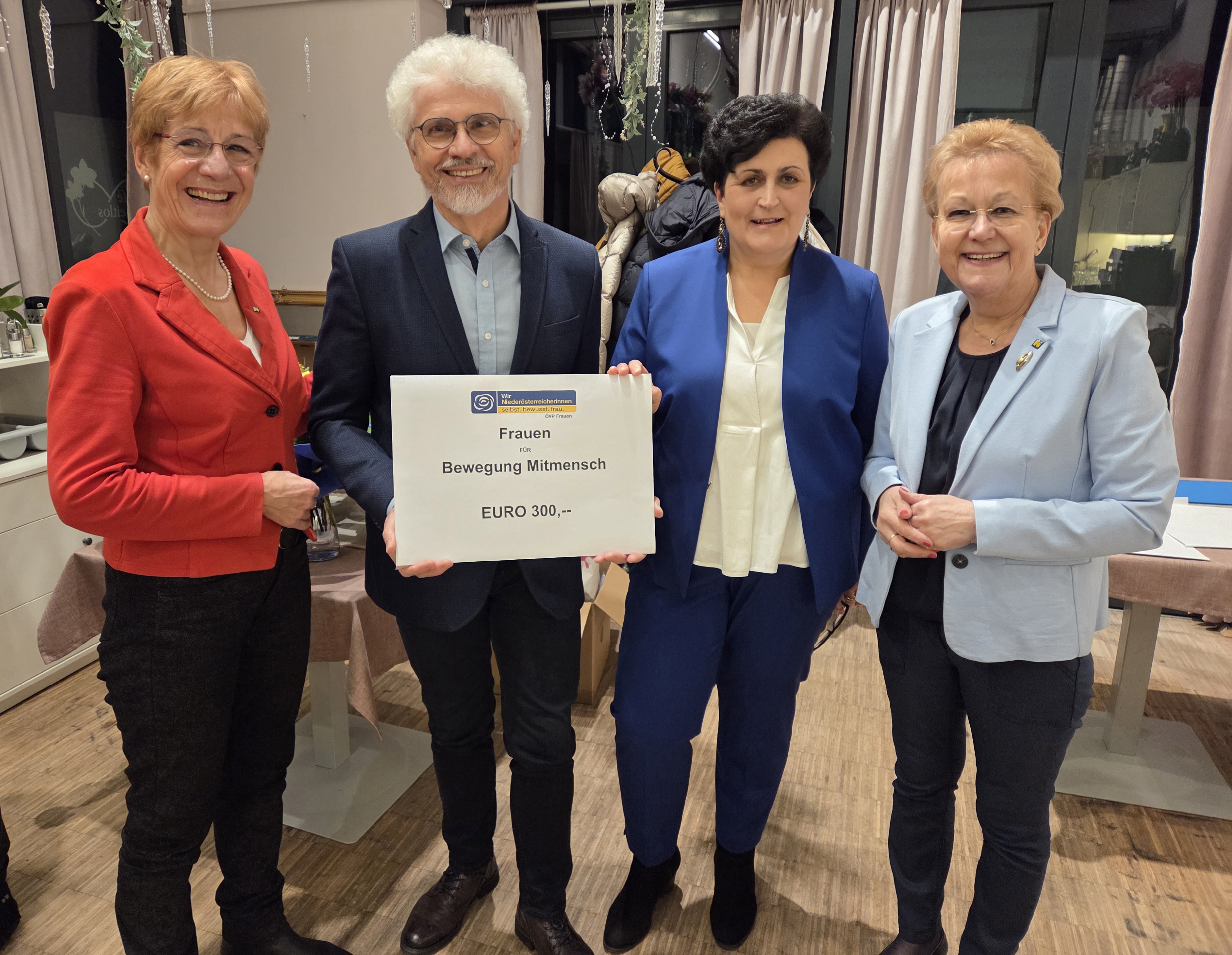 Die „Wir Niederösterreichinnen-Gemeindegruppe“ der ÖVP-Frauen Mistelbach übergab im Rahmen ihrer diesjährigen Generalversammlung eine Spende von 300 Euro an „Bewegung Mitmensch Weinviertel“ zur Unterstützung unserer Vereinsarbeit und unterstrich damit das soziale Engagement der vielseitig tätigen Damen. Im gleichen Umfang unterstützt wurde auch das „Frauenhaus Mistelbach“.